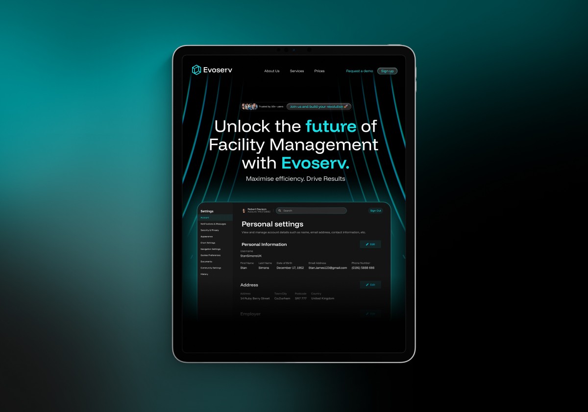 Facility management isn't exactly an exciting industry to design for. Most companies in the space either go full corporate or try too hard to look innovative with generic tech startup aesthetics. Evoserv needed to land somewhere in between: credible enough to win contracts, modern enough to not feel outdated.